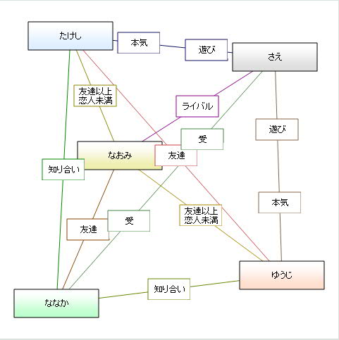おまけ。今話題の「相関図ジェネレータ」を主要登場人物でやってみました。