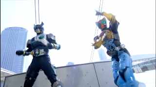 全て胸像になっていますが、ライダーごとに音が出たり、光ったりとギミックが違うとか。 僕がもらったのはV3で、ボタンを押すと目とベルトが光るというものでした。シンプルながら楽しい。 ![]() ガンバライドのカードとシールが1枚付属。 シールは昭和ライダーオールスターズと平成ライダーオールスターズの2種類。 僕のは平成ライダーオールスターズでした。 ガンバライドのカードは「シャッフルオーズカード」。 スキャンすると仮面ライダーオーズの7コンボのいずれかが登場するそうです。 ![]() さっそくガンバライドで使ってみました。