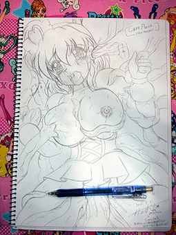 「ホームページにボテ腹のスケブの写真がUPされているので、 『この人は描いてくれるんだ!』と思って頼みやすいんです。ボテ腹は『アウトー!』な人も多いですから」 との返事を読者さまからいただきました。 成る程、なんとなく納得。 |