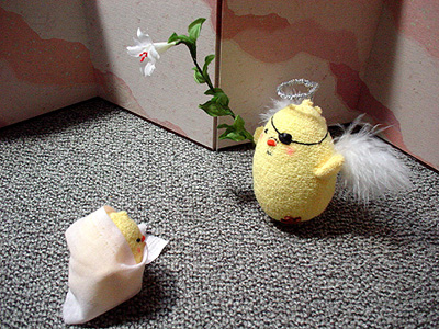兄さんぴよ「ちゅーことで、ぴよぴよクリスマス劇場、はじめぇ!」 遥ぴよ「はじめぇ!」 ◆本日のキャスト◆ マリア:遥ぴよ ガブリエル:兄さんぴよ@ゲーム ナレーター:兄さんぴよ@劇場版 【アドベント第1週:受胎告知】 あるときな、ガブリエルーいう天使はんが、ガリラヤっちゅートコにあるナザレの町に神はんからのお遣いで来はったんや。ナザレにはヨセフはんいうダビデはんの血筋のおっちゃんがおんねん。ヨセフはんには一緒なるいう約束した嬢ちゃんがいるよって、天使はんはこん嬢ちゃんに会いに来はったんや。嬢ちゃんの名前はマリアいうらしいで。