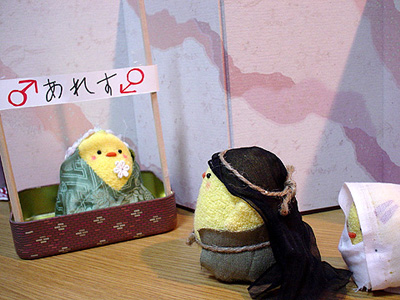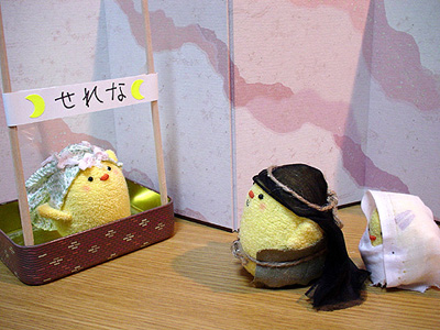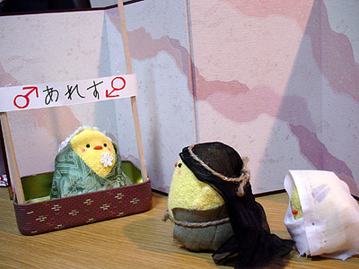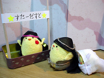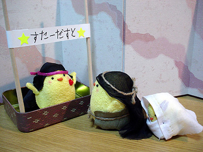 遥ぴよ、熱演。 妙に前傾なのはお腹を抱えているつもりっぽいです。 アドベントは第4週=クリスマス礼拝という教会もありますが、日々是は当日までひっぱります。ということで、残り2回。来週は「東方の博士達」。東城会の親世代が総出で頑張ります。クリスマス当日は…兄さん再登場です。 ('07年12月16日 日々是より) |