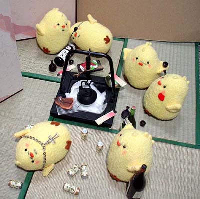 大吾ぴよのフライングアクション(=吊られてる)は手芸用透明糸使用。 ↓ちなみにカメラをひくと、カシカズぴよ達がいちゃいちゃしてるのも写る。