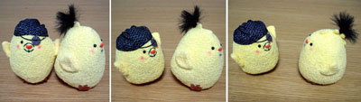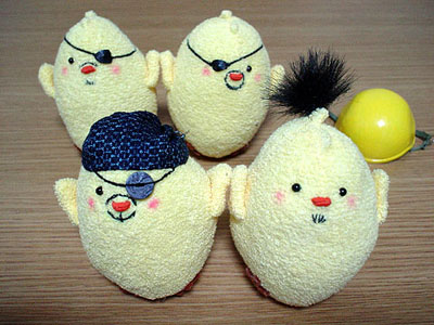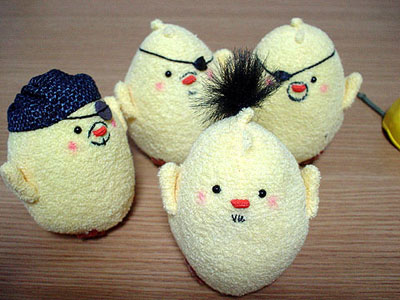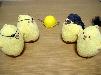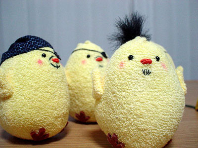 兄さんぴよ@見参の眼帯は、1/6サイズの鬼炎のドスを作ったときに、余った鍔です。こんな形で使うことになるとは。ちょっと大きいのはご愛敬。気が向いたらフルスクラッチしまっす。しっかしこの兄さんの格好、とある鍛冶屋のオッサンを彷彿とさせすぎて心配になります。兄さん…鍛冶屋だったりしないよね? 戦わせてくれよ?SEG@さん。 …まあそんなわけで。相変わらずぴよぴよしている日々是です。見参については、全面的に支持するわけではありませんが、まあ、楽しまないと損した気分になりそうなので、ひとまず兄さんだけ作ってみました。今後親世代を彷彿させるような格好いいオッサンどもが出てくると個人的には嬉しいンですが…。どこへいくやら。 さて、次はスナイパーぴよでも作るかな、DVD出る前に。作りかけの新藤ぴよと姐さんぴよも完成させないとなー。 ('07年9月19日 日々是より) |