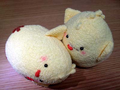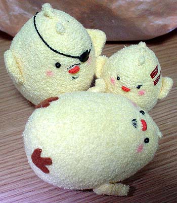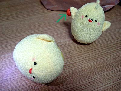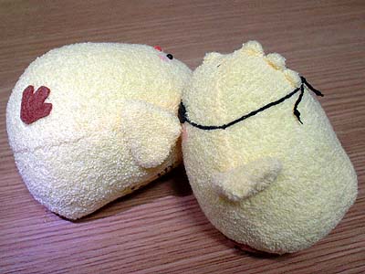 彼岸を過ぎ、くまの生息域は大分春らしくなってきたのでぴよ達のお昼寝風景を激写。「鳥ってよく仲間の匂い嗅いでるよね?」という相方との会話から生まれた謎写真です。目玉開いたままなのですが、寝てるコトになってます。(ぴよ(鳥)というより魚にナッタ!)心の眼でご覧下さい。…つーかむしろ心眼極めちゃってください。 ↓昼寝中の嶋野ぴよを発見した真島ぴよ。