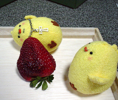 風間ぴよ「どうだ嶋野。かわいいだろう。」 嶋野ぴよ「いちごはな。自分が可愛いタマかどうかいっぺん鏡見てきいや。」 風間ぴよ「ふむ。(鏡を見ている)…今日も男前だな!」 日々是の風間ぴよはいつでも絶好調です♪ ↓そしてなにやら愉快な物を発見してしまった模様。