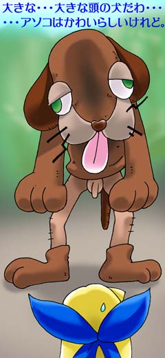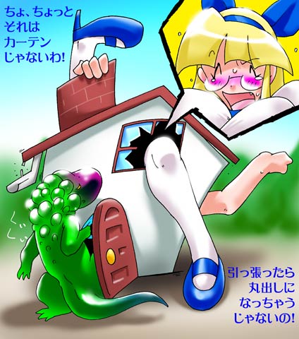 | 「こらまた、えらく入り口が縮んだもんだ!」 蜥蜴のビルは、カーテンと間違えてアリスのパンツをめくるとその中へ、赤黒く腫れ上がったイボイボでごつごつの頭を突っ込んだ。 |