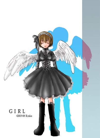 黒いヒラヒラした服が描きたくなってかいたもの;写真屋エアブラシ使いオンリのアナログヤロウなんでかなりの時間を要して描き上げました。精進、精進(涙) GALLERY >>next