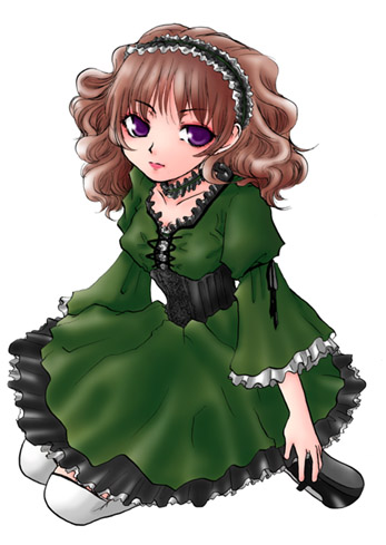 ヒラヒラ第2弾。 私はどうもフワフワくるくるした髪型が好きです(苦笑)きっと万年ボブショートの所為でしょう…。 …そういや、最近ゴス着てないですなぁ…(独り言) 白黒描画版 back<< GALLERY >>next