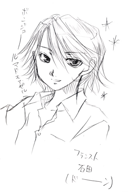 いやがらせで友人たちに送りつけたボンジュール石田(死)。こんなのになってしまったのは描く前にガッシュ(フォルゴレ出番の話)を見ていたからでしょうか?(笑) back<< GALLERY >>next