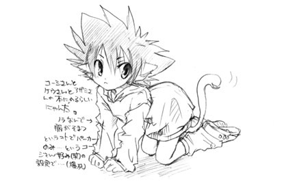 ネコ太一。 端に汚い走り書きが残っていますが、友人のネコ本のゲストの依頼をされて 描いてみたネコ太一ことにゃん太。実は4年も太一さんを描いてて…耳をつ けたのはコレがはじめてでした(苦笑) back<< GALLERY >>next