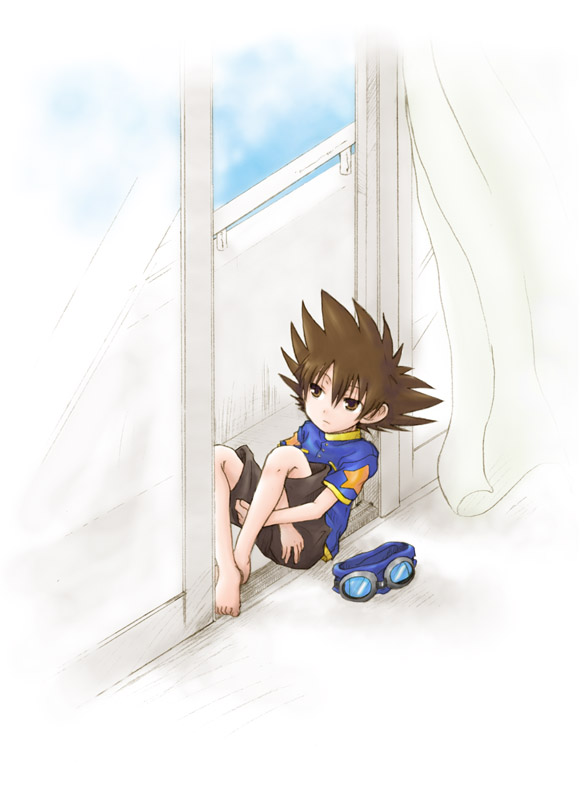 背景を描こう月間中;縁側の次は窓で…(汗) 夏休みが終わってデジタルワールドの事をぼんやり思い出す太一さんが描きたかったのですが… 何かウツっぽい(汗) 昨年の夏に出した「ココロノツバサ」のフクセン絵って事でとらえてもらえたら幸いです…(^^;<20040903UP> back<< GALLERY >>next